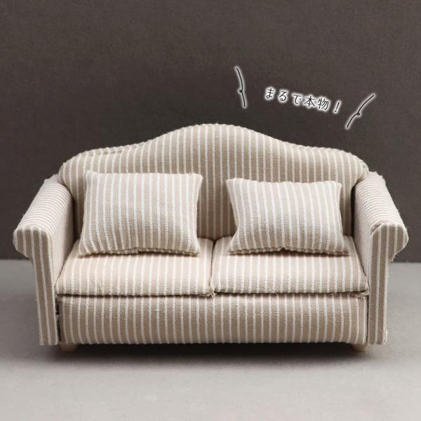 ミニチュア家具 1/12 1:12 スケール 家具 ソファ 3点セット B品 訳アリ ドールハウス 二人掛け 一人掛け シングル クッション ホワイト ベージュ ストラ