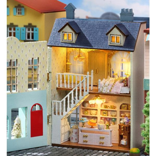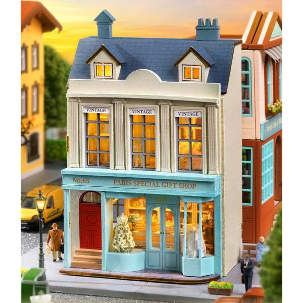 ドールハウス ミニチュア 手作りキット セットレトロ タウン 並べて 街並み 街 町 パリ ヨーロッパ 前面がパカッと開く アンティーク 店 LEDライト|スペシャルギ