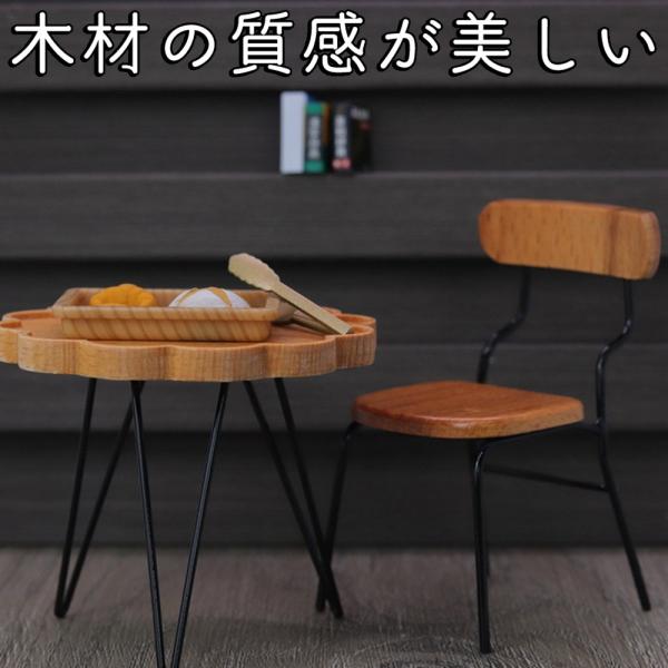 ミニチュア家具 1/12 1:12 スケール 家具 テーブル & イス 3点セット ドールハウス 一人掛け カフェ シングル レトロ アンティーク 異素材 ビス