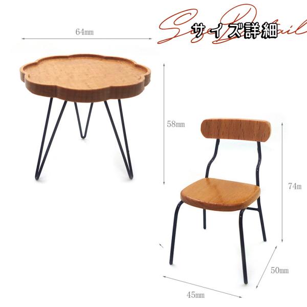 【サイズ】 [ テーブル ] 直径6.2×高さ5.7cm [ チェア ] 幅4.5×高さ7.4×奥行5cm 【セット内容】 テーブル×1、チェア×2 【 素材 】 ウッド