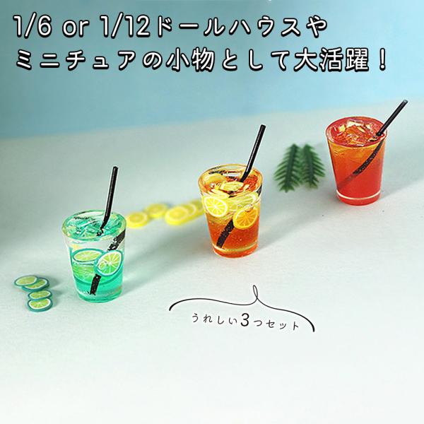 ミニチュア1/6 1:6 1/12 1:12 スケール レモンティー アイスティー レモンスカッシュ グラス 3つ セット ドールハウス ドリンク 飲み物 ドー