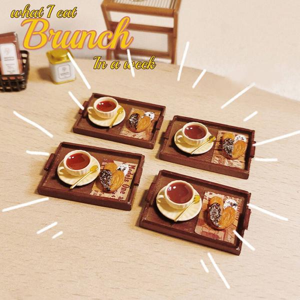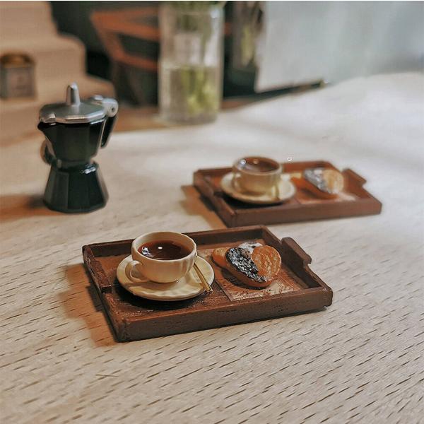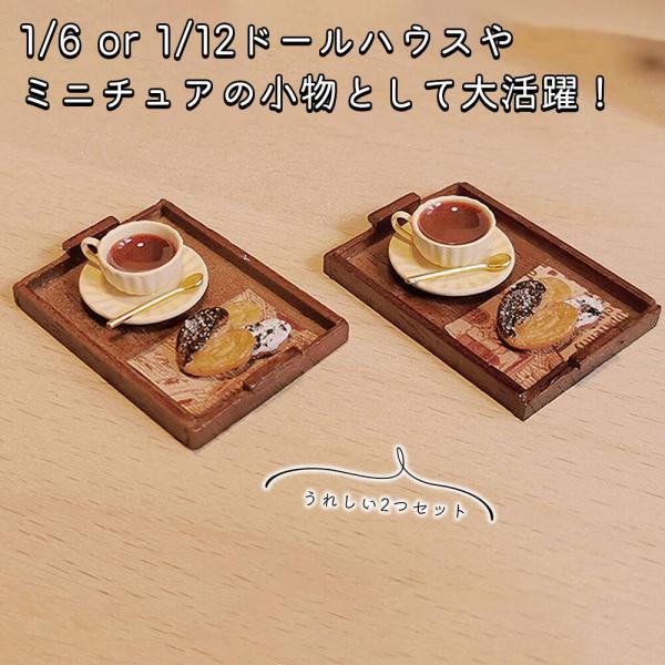 ミニチュア1/6 1:6 1/12 1:12 スケール アイス 紅茶 ティー ハート クッキーセット 2つ スプーン ウッド 木製 お盆 /ドールハウス ドリン