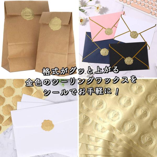 シールステッカー 6シート ( 150ピース ) 大容量 3.4×3.7cm シーリング ワックス 風 ぽい ハート ろう スタンプ 封蝋 ぷっくり 金色 ゴー