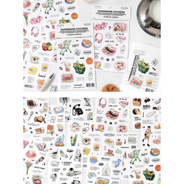 【 おしゃれなコンビニやスーパーの棚のようなわくわくするステッカー 】 モチーフ型に切り取られた、細部までこだわってデザインされているおしゃれかわいいシール。