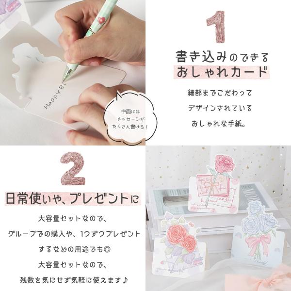メッセージ カード花束 8種 40枚 大量 徳用 セット 花 フラワー イラスト 英字 二つ折り 飛び出す 3D ミニレター レターセット パステル グリーディ