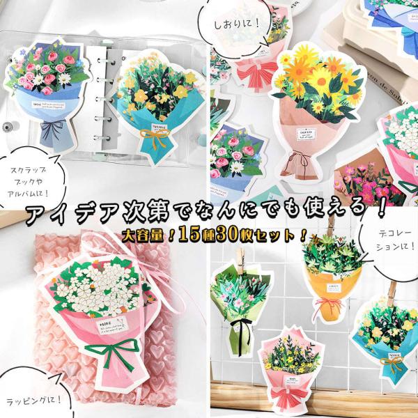 ポストカード メッセージカード30枚セット 30種 花束 ブーケ 花 フラワー イラスト ひまわり 小花 桜 さくら ガーベラ 薔薇 ばら 百合 ラベンダー カ