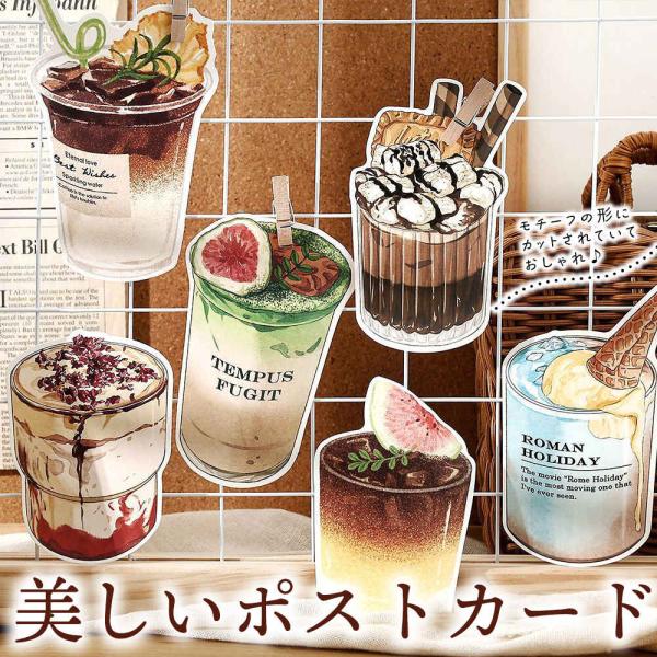 【個性あふれるデザイン◎】コーヒーやスイーツをモチーフにしたバリエーション豊富なポストカードセットです。本物のドリンクのようなリアルで可愛いデザインが魅力。15種類の異なるデザインは、それぞれの形にカットされて、おしゃれ◎