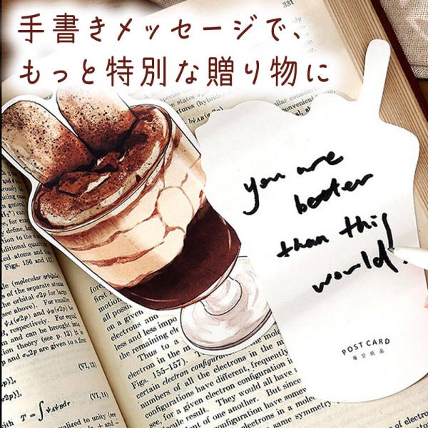 ポストカード メッセージカード30枚セット 15種 カフェ カフェラテ コーヒー スイーツ イラスト ティラミス ブラウン パフェ 抹茶 イチジク しおり ギフ