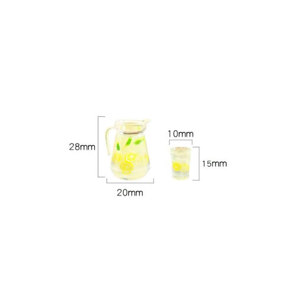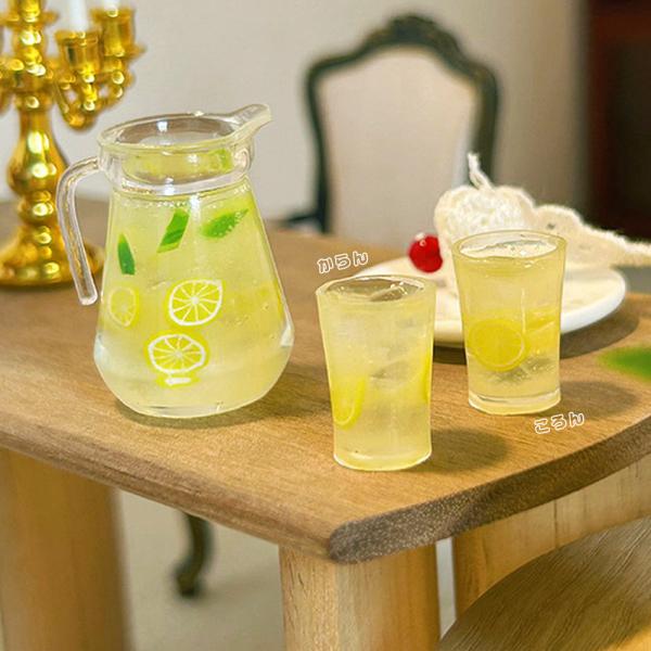 ミニチュアはちみつレモン コップ 2個 & ピッチャー セット 1/6 1/12 スケール ドールハウス|グラス 氷 夏 食器 レモネード イエロー ドール撮影