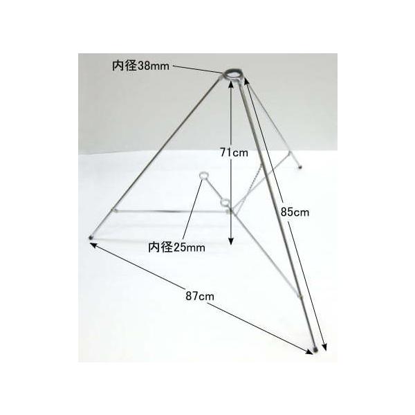 旗用のポールや竿を立てて掲揚する旗立台です。■三脚台の高さ : 約71cm■足の太さ : 9mm■足の長さ : 85cm■上穴の内径 : 38mm■下穴の内径 : 25mm■材質 : 鉄製クロームメッキ※翌日配達「あすつく」をご利用の場合は2台までのご注文とさせて頂きます。