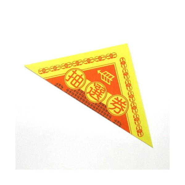 抽選の時に使う三角クジです。1セット500枚での販売となります。使用するときには裏側に1等・2等・ハズレなど記入して三角形に半分に折り、のりやテープやホッチキスなどで止めます。■大きさ : 7cmX7cm■材質 : 紙