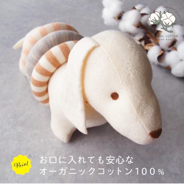 オーガニックコットン100% 知育 ベビー 布 犬とリング ぬいぐるみ ファーストトイ 赤ちゃん おもちゃ ギフト 出産祝い 鈴入り 日本製 organic garden