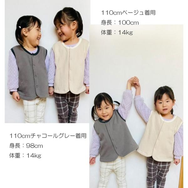 キッズサイズ綿100% 裏起毛ベスト 体温調節 日本製 NOホルマリン(110cm 120cm)1219