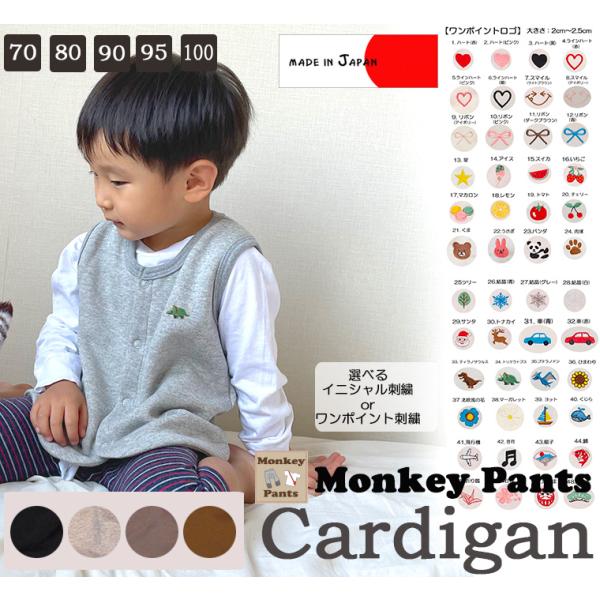 裏起毛 綿100% ベスト 体温調節 日本製 NOホルマリン(70cm 80cm 90cm 95cm 100cm) 選べる刺繍10551219