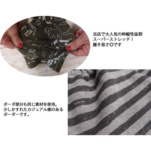 【在庫処分セール】子供服 パンツ アニマル&ボーダー伸縮性7分丈スリムパンツ保育園(70cm 80cm 90cm 95cm)2998