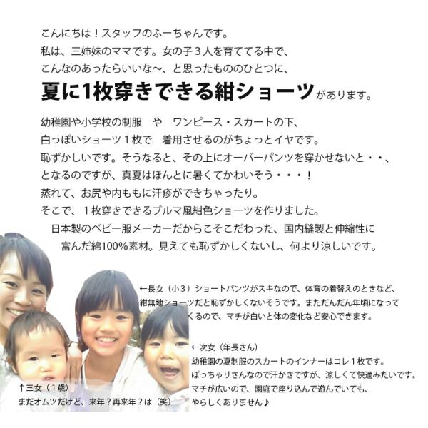 子供服 パンツ 夏のブルマ 紺色ショーツ 1枚穿きできる(100cm110cm120cm130cm)幼稚園小学校 日本製保育園8877・メール便可10