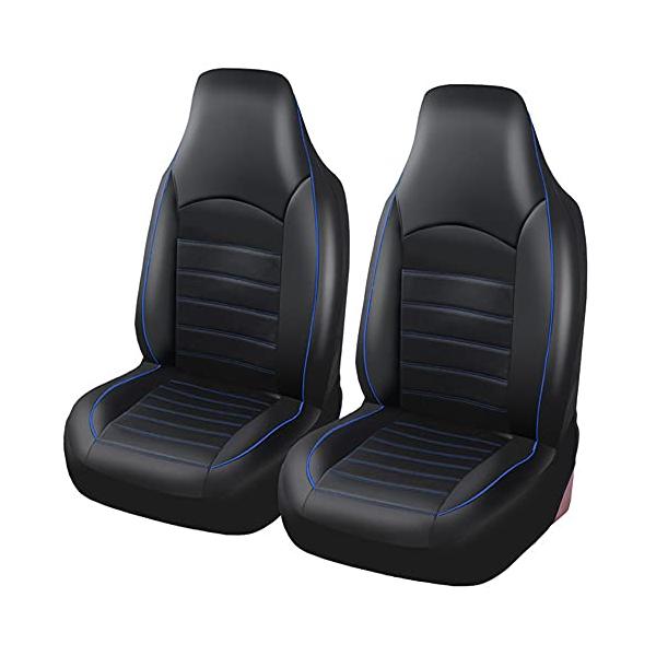 シート カバー 汎用品 普通 軽 自動車 運転 助手 レザー 合成皮革 防水 エプロンタイプ 2席分 (ブルーライン)