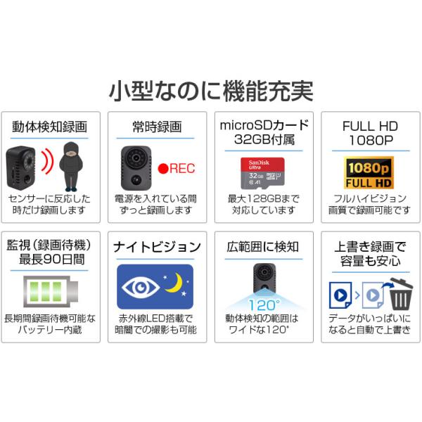 小型カメラ 気付かれずに証拠撮影 高画質 家庭用 防犯 監視 ミニカメラ 録画 バッテリー内蔵 SDカード