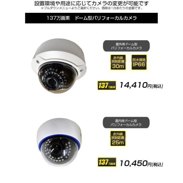 防犯カメラ 監視カメラ 単品 AHD 137万画素 バリフォーカルカメラタイプ有 屋外用/屋内用 防水 赤外線暗視 広角 望遠
