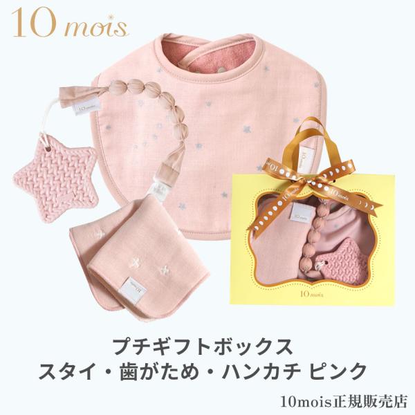 10mois プチギフトボックス スタイ・歯がため・ハンカチ ピンク 3点セット 日本製 フィセル ディモワ