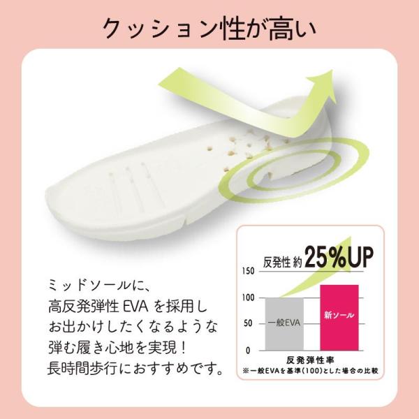 「ムーンスター イブ」のカジュアルシューズです。ハンズフリーの「らくにすぽっと履ける靴」シリーズです。透け感のあるチュール素材を使用したサマーシューズです。見た目にも涼しく、通気性も抜群です。ドローコードでフィット感の調節が容易なのもうれしいポイントです。軽くてクッション性にも優れているので、スポーティーな履きこなしや、アクティブに動く日などにもおすすめです。ヒールの高さは4.5cmで、重量は23.0cmで片足約220gの軽量設計です。