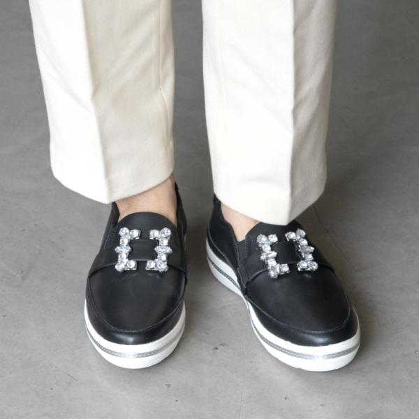 履き心地にこだわったレディースコンフォートシューズ「ムーンスター スポルス」です。ソフトな履き心地が魅力のスニーカーです。キラキラしたビジューパーツが目を惹く、スタイリッシュなスリッポンです。メタリックなソール飾りが足元からエレガントな印象を与えてくれます。インソールのクッションが足裏のアーチをやさしくサポートする形状になっています。