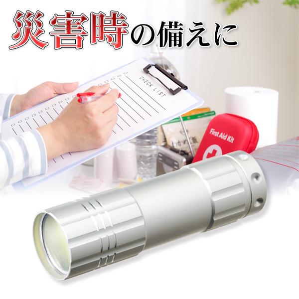 懐中電灯 小型 ミニ 防災 ハンディライト 高輝度 軽量 led アルミ製 災害用 停電 電池 明るい キャンプ ウォーキング 送料無料 50K◇ パワフルアルミライトMT