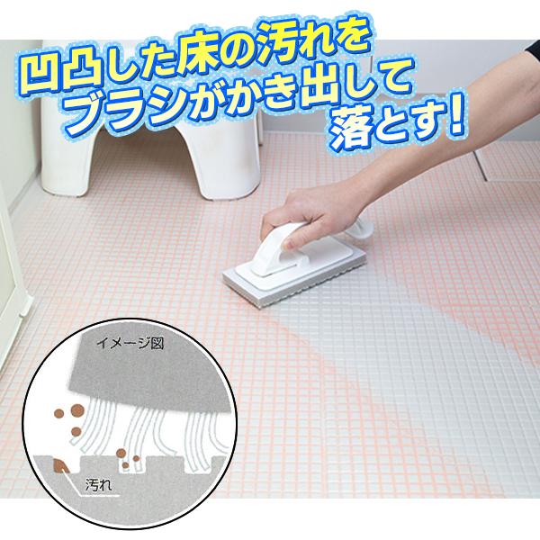 洗剤不要!水に濡らしてこするだけで、ツンツンブラシが浴室床の凹凸ミゾに入り込み、ヌメリや汚れをしっかりかき出します。