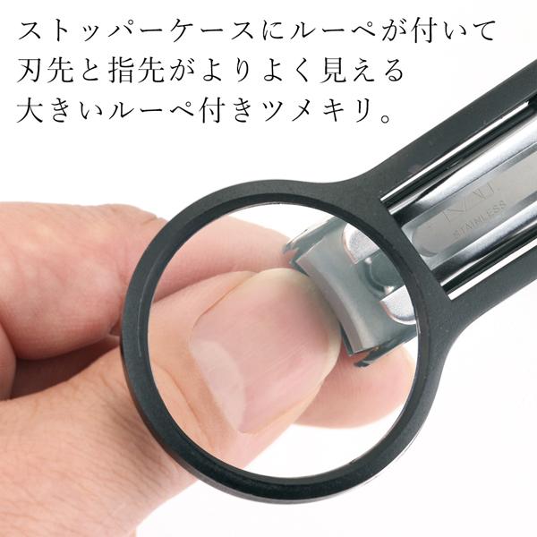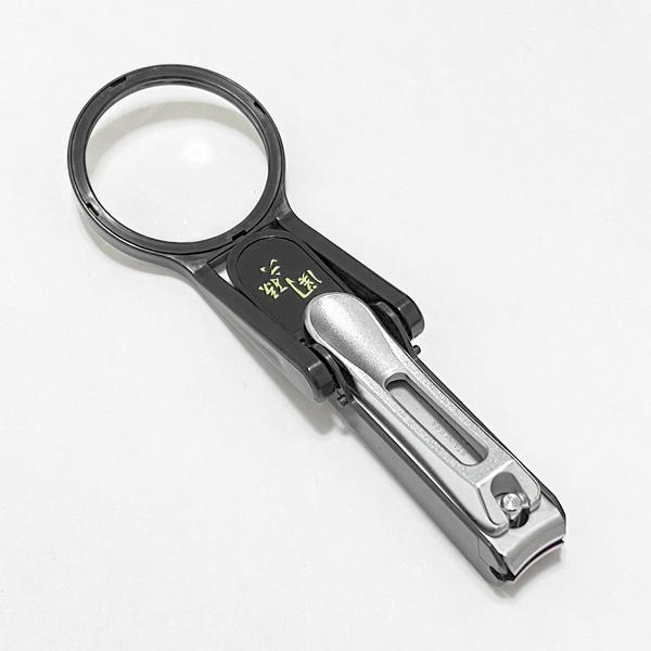 刃先と指先がより良く見える大きいルーペ付き爪切りです。
