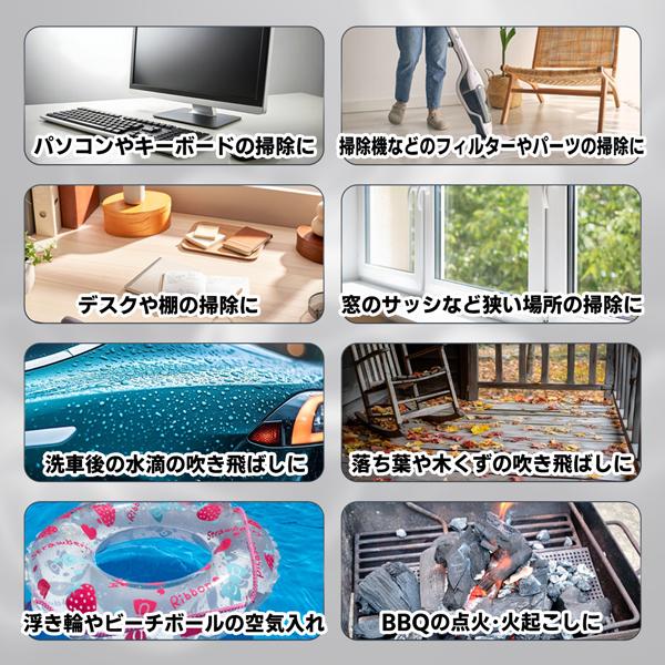 掃除や洗車、火起こし、空気入れなど様々な用途に