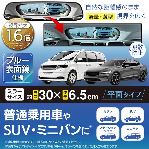 バックミラー 車 視界1.6倍 ルームミラー ブルー表面鏡 眩しくない 薄型 軽量 平面鏡 ワイドミラー 飛散防止 汎用 ミニバン SUV 送料無料- 60N◇ ルームミラー
