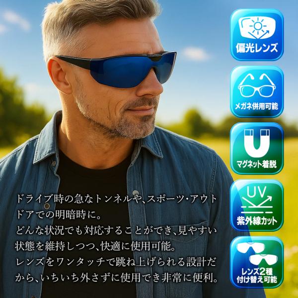 【眼鏡の上からOK】偏光 サングラス 偏光レンズ カラー 2枚セット 磁石式 メンズ UVカット オーバーサングラス 軽量 車 自転車 送料無料 7M◇ W偏光レンズ