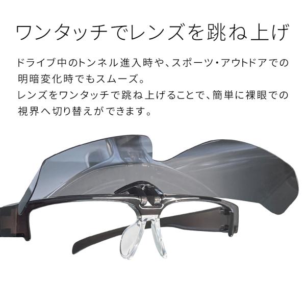 レンズをワンタッチで跳ね上げられるから、いちいち外さずに使用できて便利♪