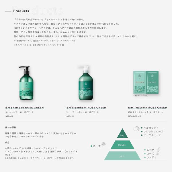 シャンプートリートメント セット ISM 本体 大容量 490ml ダメージケア 補修 保湿ケア ローズグリーンの香り サロン品質 送料無料- 60N◇ ISM:シャンプーセット