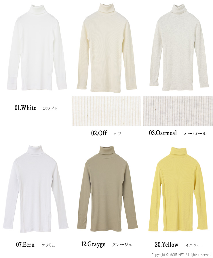 カテゴリ インナー、タートルネック、カットソー、長袖カットソー、長袖Tシャツ、リブTシャツ、無地、テレコ、レディース、トップス