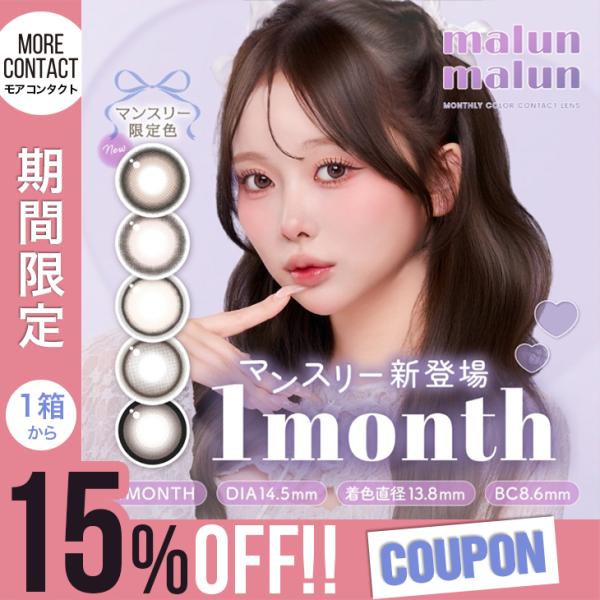 【15%OFFクーポン】カラコン マランマラン ワンマンス 1箱2枚入 malun malun 1month 度あり 度なし 1ヶ月 マンスリー momoho カラーコンタクト