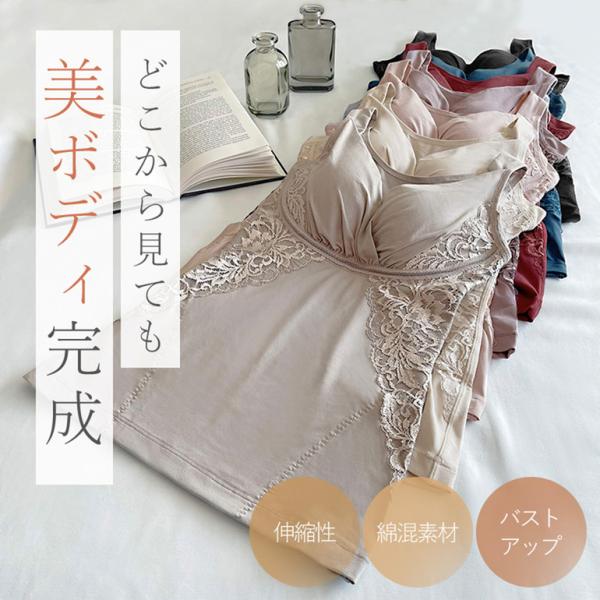 キャミソール 補正下着 ブラトップ ノンワイヤー ブラジャー ぽっこりお腹 ブラデリス BRNY QVC 12TSV 綿混キャッチャーカップレースブラキャミ