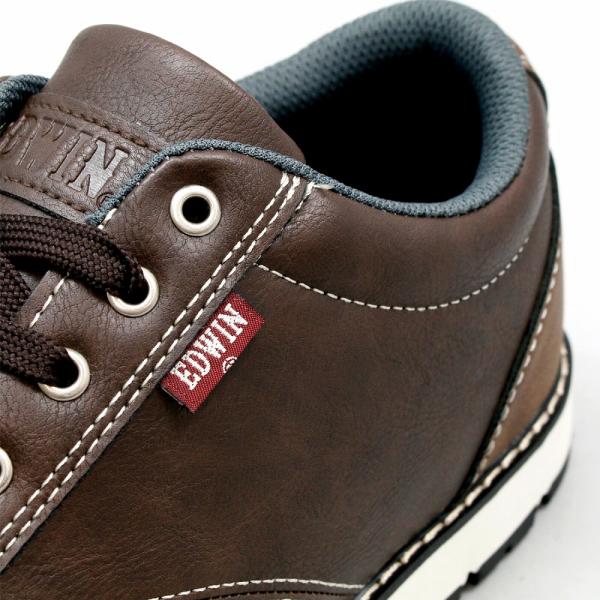 EDWIN 防水 スニーカー メンズ 3E 防滑 軽量 カジュアルシューズ 上質素材 PUレザー 革靴 おしゃれ 紳士 黒 紺 茶 EDM4555 エドウィン 正規販売店