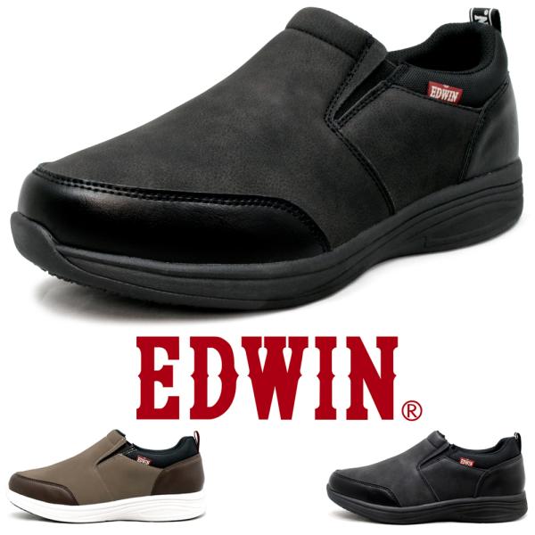 6E 幅広 スニーカー 紐なし スリッポン カジュアルシューズ 防水 軽量 PUレザー 革靴 おしゃれ メンズ EDWIN エドウィン edm72|正規販売店