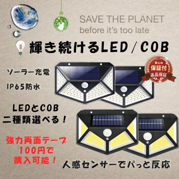 ソーラー ライト ガーデンライト センサーライト 屋外 led cob 人感センサーライト 玄関灯 防水 2個/4個セット ポーチライト 防犯 玄関 ガレージ 100LED 高輝度