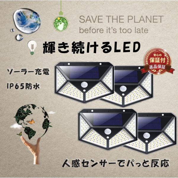 ソーラー ライト 屋外 ガーデンライト センサーライト 屋外 led 人感センサーライト 玄関灯 防水 4個セット ポーチライト 防犯 玄関 ガレージ 100LED 高輝度