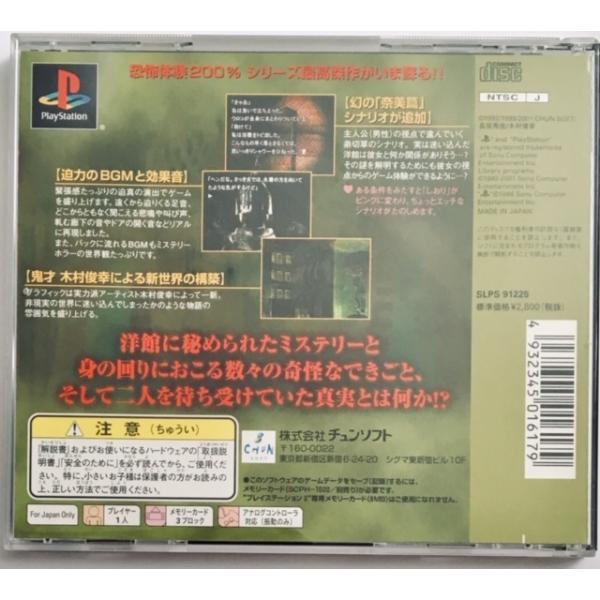 画像の商品をお届け致します。【ケース・説明書あり。】帯や特典等は付属致しません。初期動作確認済み。盤面研磨済み。デリケートな性質上、一部に研磨で除去しきれなかった小キズや研磨剤付着残り等がある場合ございます。【ケースに小凹み・スレ・キズ等】古い物ですので、説明書・ジャケット・その他に多少のキズ、イタミ、ヨゴレ、クスミ、黄ばみ、日焼け等がある場合もございますが、年代的な中古として概ね良好と思います。上記以外の多少のスレ、使用感及び経年劣化はくれぐれもご了承願います。※コレクター用出品物ではございません。SONY純正本体以外での動作の不具合の責任は負えません。ガイドラインは勿論、通常プレイで通常使用出来ない程のコンディションではございませんが、コンディションについて繊細でシビアな感性のお持ちの方は実物とイメージが異なっては大変ですのでどうか新品商品をお買い求めくださいませ。ご購入の際はお手数ですが当店の詳細頁にお目を通し願います。当店について詳しい内容は検索エンジンより【森のきつねの本屋さん】でお調べ下さい!! 北国、北海道札幌市より日本郵便のゆうメール(土日祝日を除く・追跡番号なし)にて発送です。