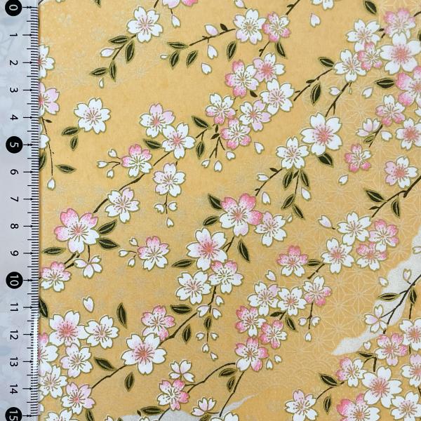 友禅和紙 華やか クリーム色地に桜ちらし 切り継ぎ風 大判 約63x 93cm