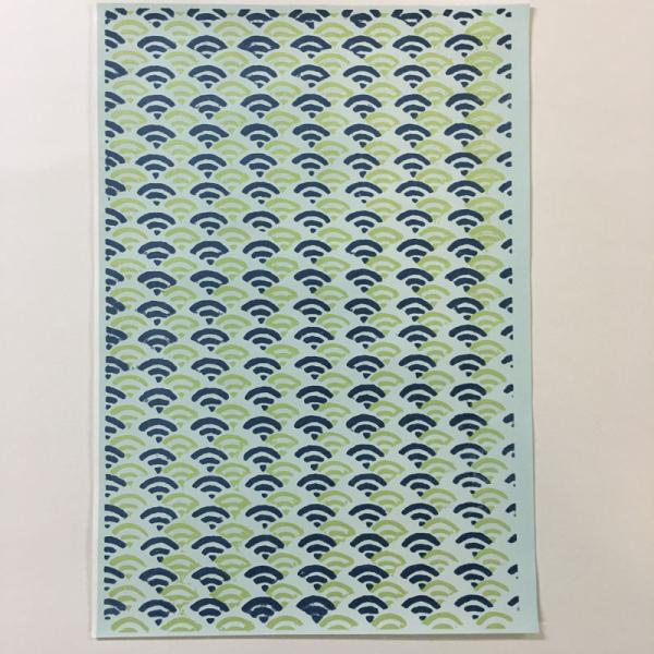 木版 手摺り和紙 《京千代》 青海波 青色/黄緑色 75