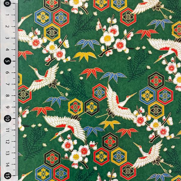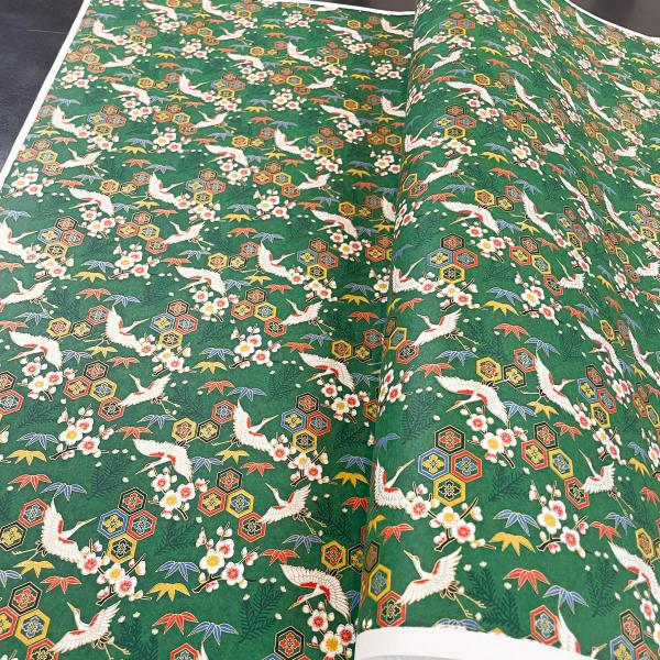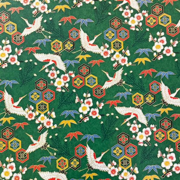 友禅和紙 豪華 鶴と亀甲花菱 梅 竹 緑 大判 約63x93cm 千代紙