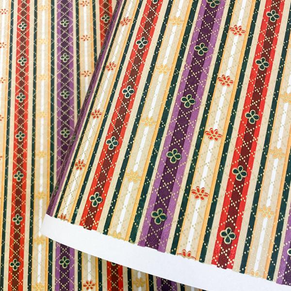 友禅紙 ストライプに小花 縞 ドットで交差斜線 ベージュ 紫 オレンジ 大判 約63x95cm 千代紙