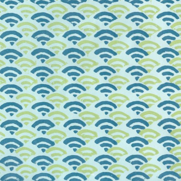 木版 手摺り和紙 京千代 青海波 青色/黄緑色 75 小判 厚手 26 x 38cm