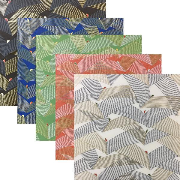 華やかな友禅和紙 和モダン ライン柄 9色 大判 約63x93cm 白 オレンジ 淡緑 金 青 緑 黒 赤 ワイン