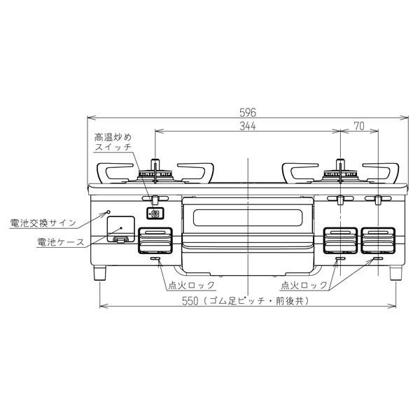 ガステーブル ガス台 卓上 据置型 ホース付き 水無し片面焼グリル 59センチ