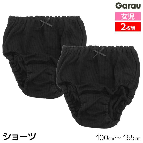 【2組までメール便可】女児 ショーツ 黒 リボン付き 2枚組 リブ 女の子 パンツ 綿100% 子供 ガロー Garau【メール便送料無料】